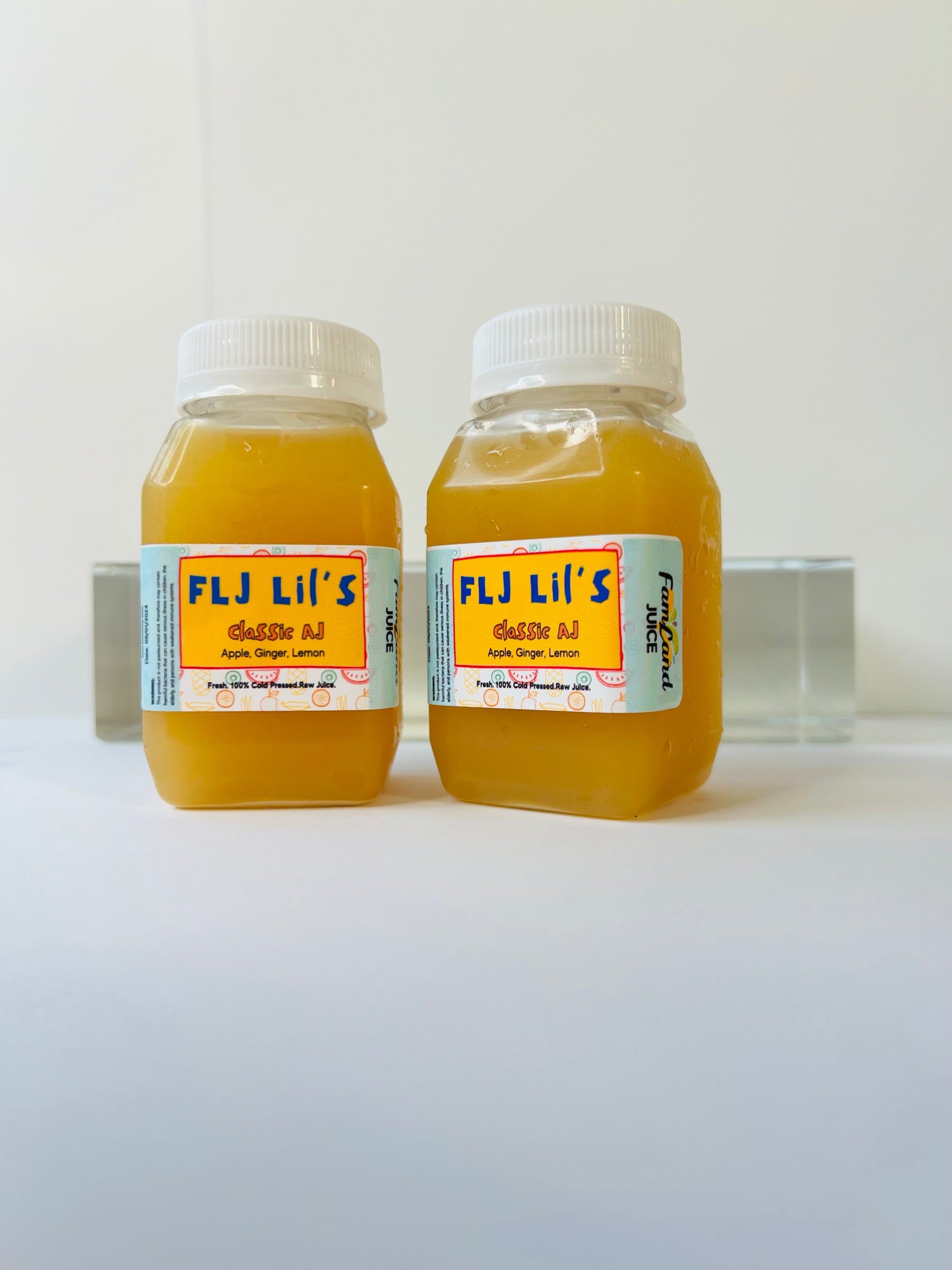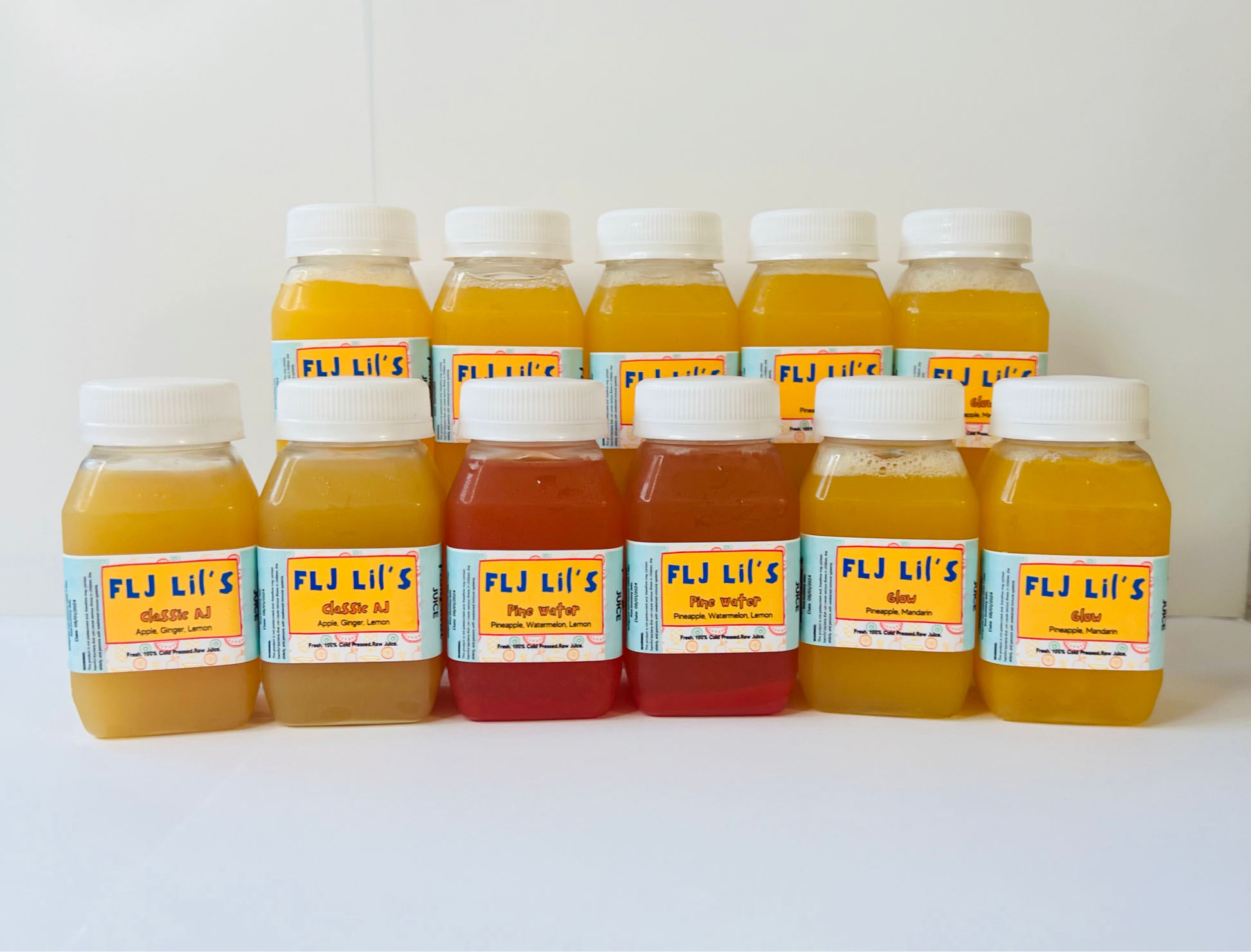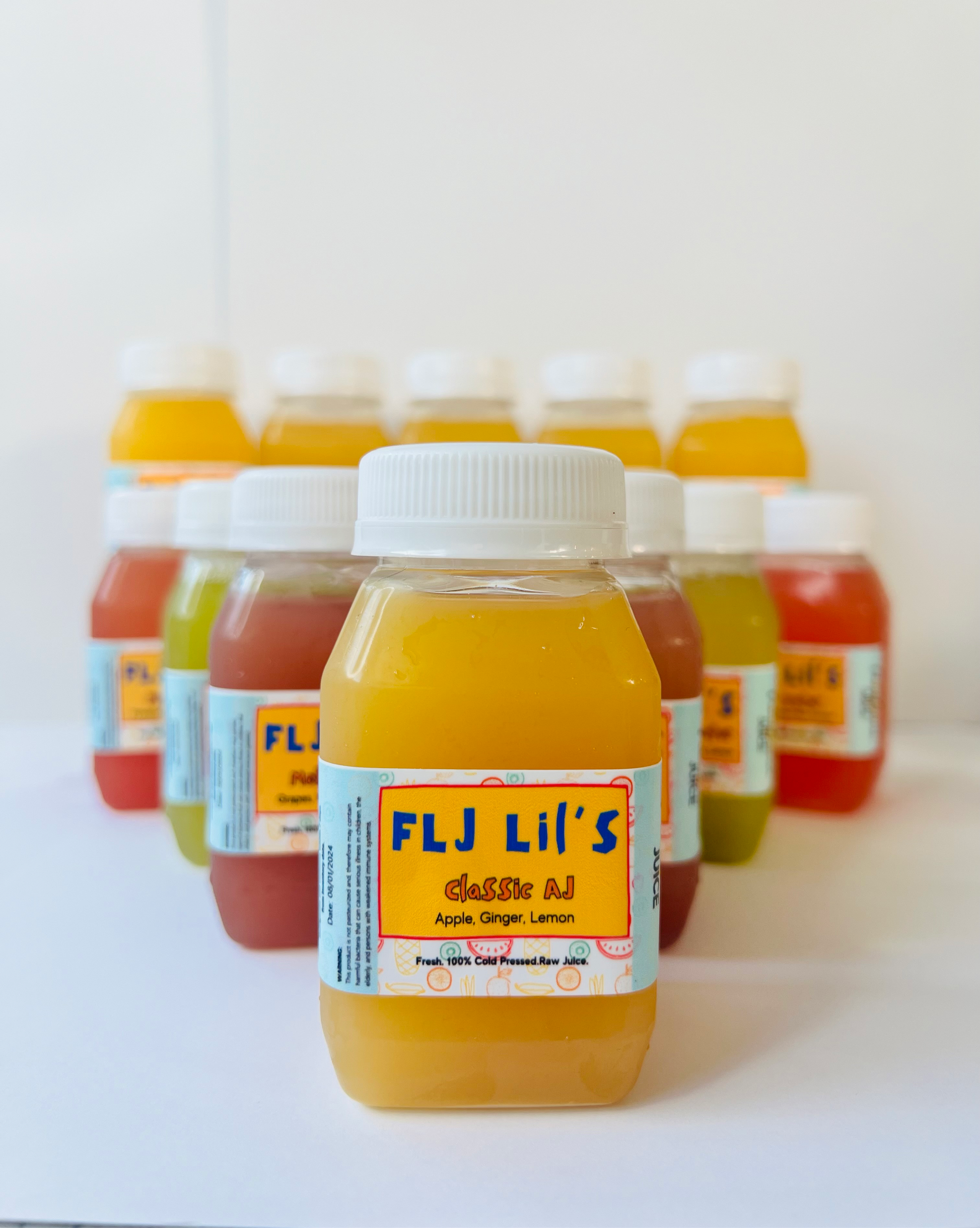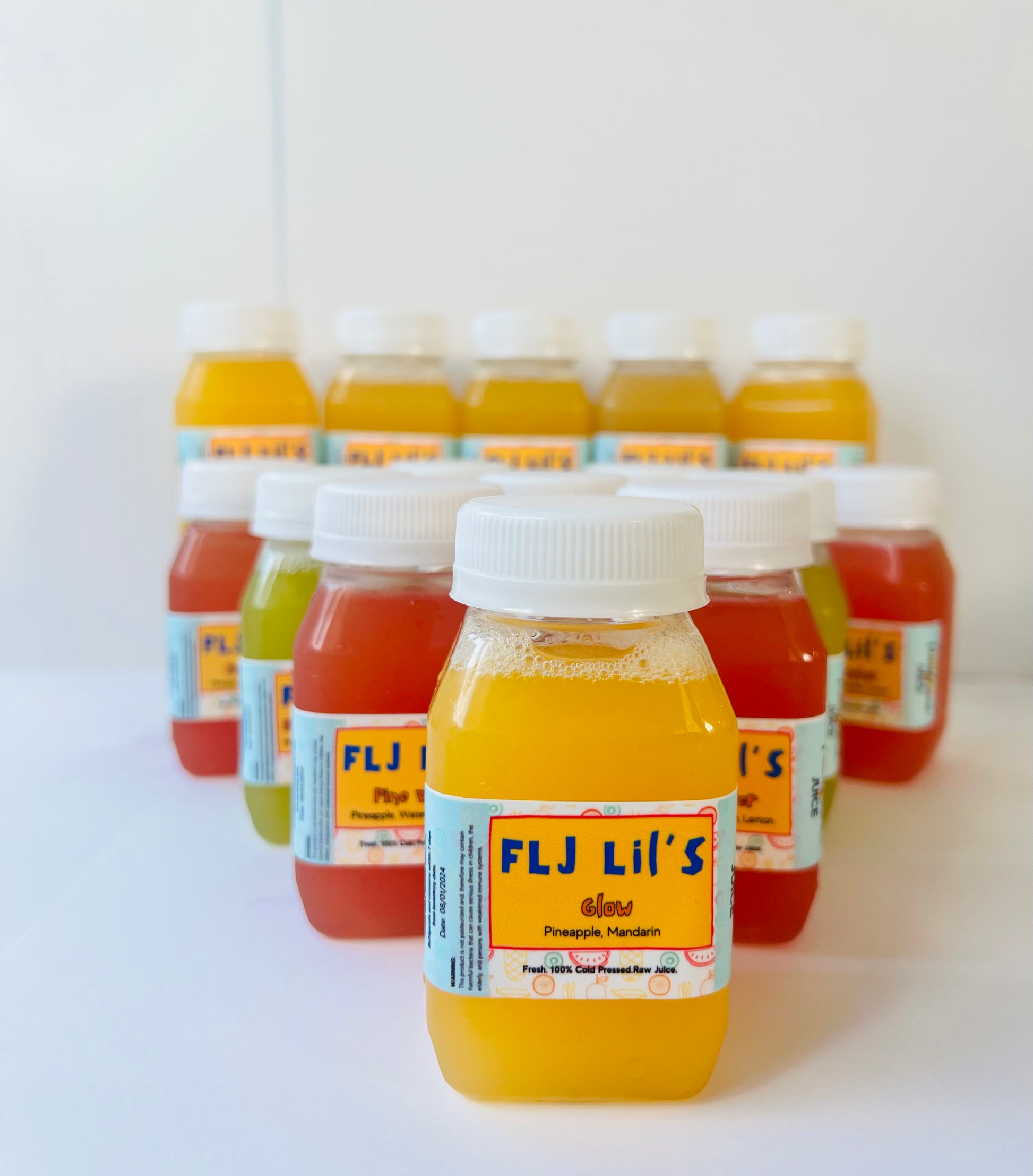 Brighten your child’s day with the FLJ Lil’s Glow and Go Pack! This fun and vibrant package includes 6 small bottles of cold-pressed juice, perfectly curated to keep them energized and refreshed. This pack includes Six 4oz bottles — 2 glow, 2 classic AJ, and 2 pine water.