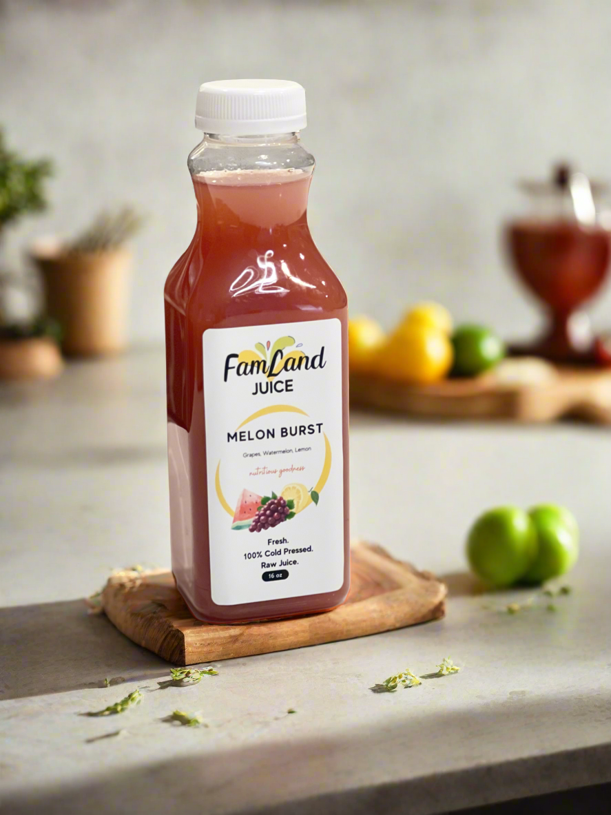 Refresh and energize with Melon Burst, a delightful blend of sweet grapes, juicy watermelon, and a zesty splash of lemon. This cold-pressed juice is packed with natural hydration, antioxidants, and a burst of bright, fruity flavor—perfect for any time of day.